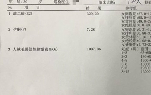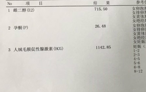 验孕结果: HCG值922.7